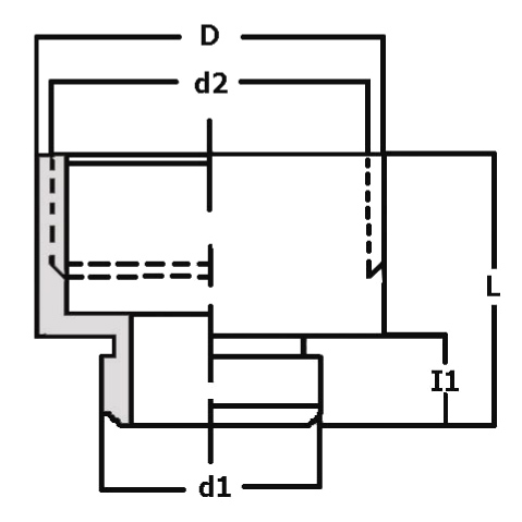 | Partnumber | Thread outside | Thread inside | Length of thread (I1) | D | L |