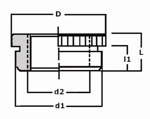 | Partnumber | Thread outside | Thread inside | Length of thread (I1) | D | L |