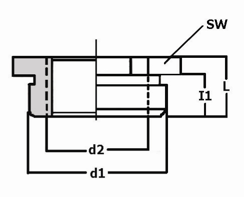 | Partnumber | Thread outside | Thread inside | SW | Length of thread (I1) | L |