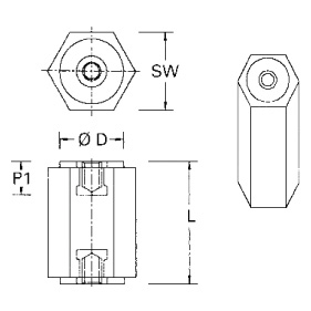 | Partnumber | Thread size | Length (L) | P1 | P2 | SW | D |