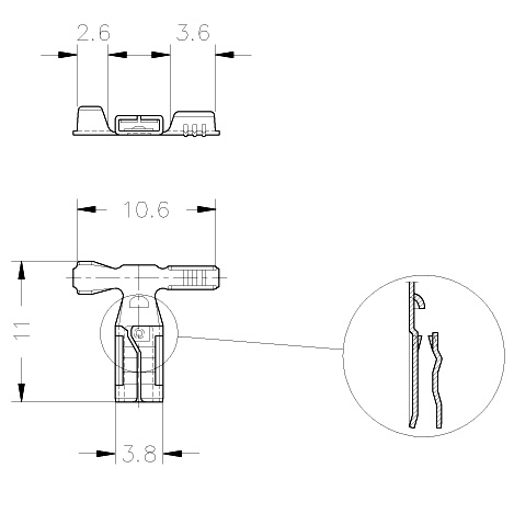 Receptacles 2.8 (.110) series, straight type for connector housings, low insertion force. Rear Dimple