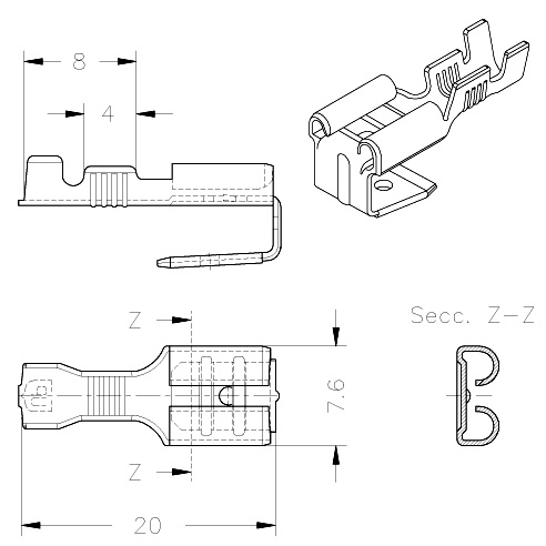 | Partnumber | Wire size | AWG | Tab thickn. | Material | Mat. thickn. | Parts x reel | Ø Insul. |