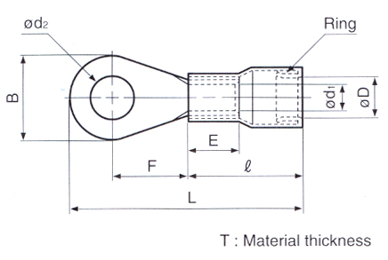 Ring tongue crimp terminals, flared vinyl insulation with copper sleeve underneath, Taped on reel (TOR)