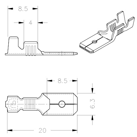 | Partnumber | Wire size | AWG | Tab thickn. | Material | Mat. thickn. | Parts x reel | Ø Insul. |