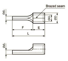 | Partnumber | Wire size | AWG | d2 | L | F | E | Ø D | Ø d1 | Mat. thickn. |