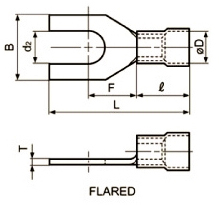 Spade tongue crimp terminals, flared vinyl insulation, loose piece