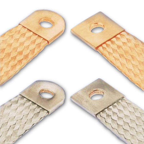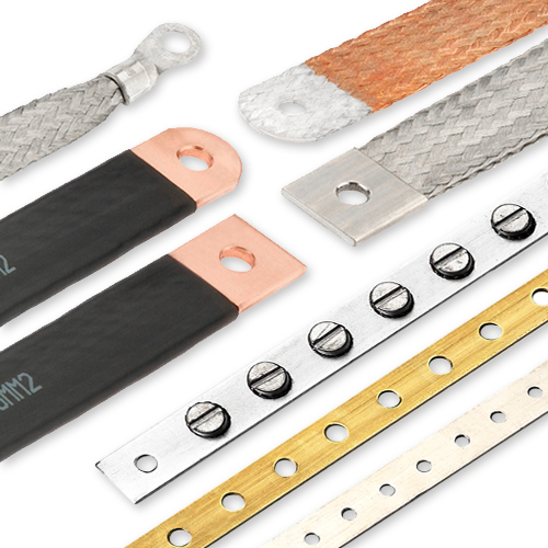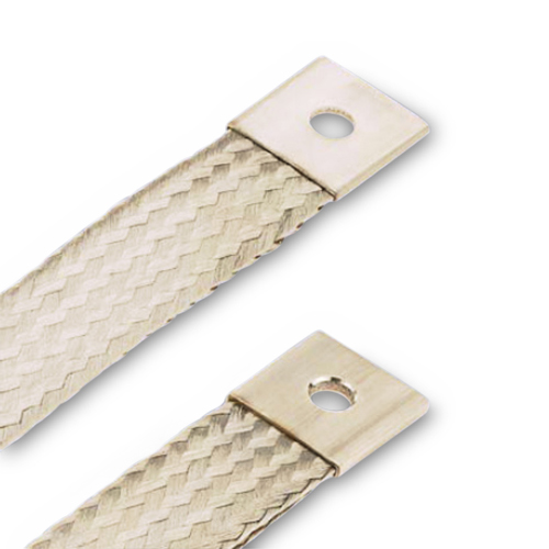 Earthing tapes, solderless pressed contact areas