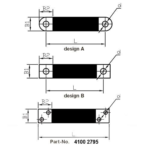 | Partnumber | Design | Cross-section | B1 | B2 | L | ca. s | d | Current-load |