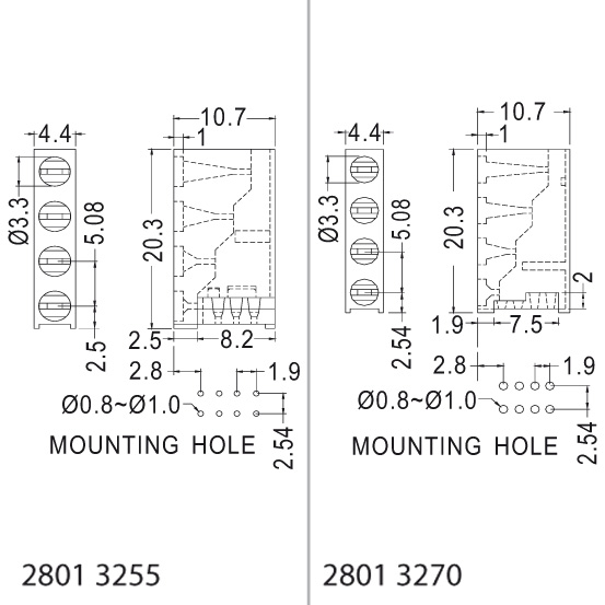 Round LED spacer 90 degrees, Ø3mm LED