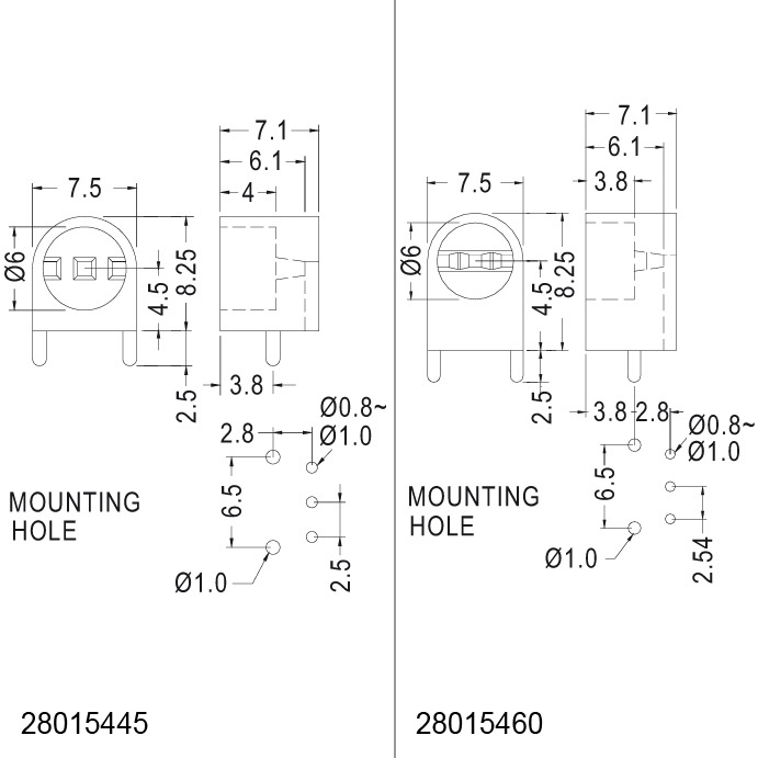 LED spacers, 3 pins