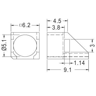 Round LED spacer 90 degrees, Ø5mm LED
