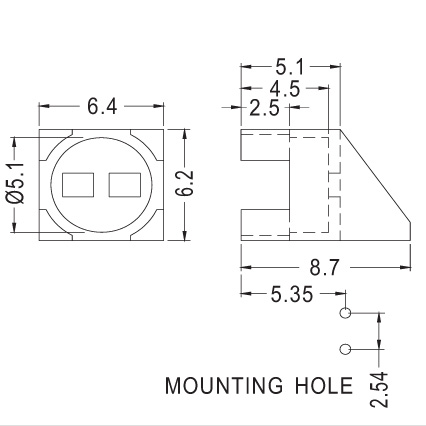 Round LED spacer 90 degrees, Ø5mm LED (03)