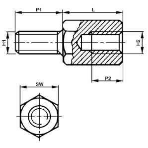 Hexagonal, int / ext. thread