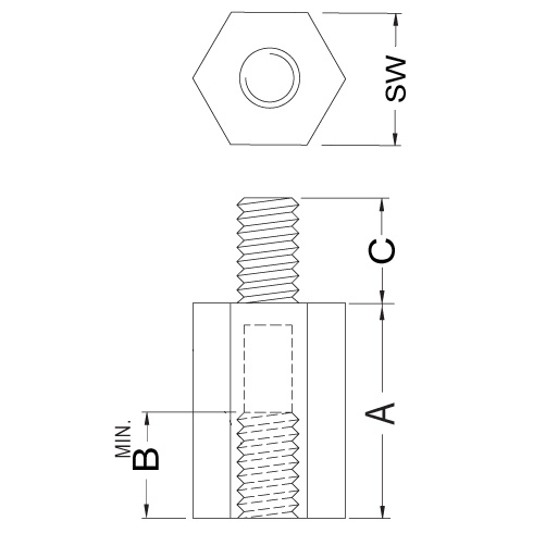 | Partnumber | SW | Length (L) | A | B | C | Thread |