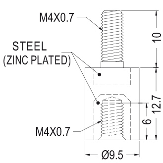 Plastic round spacer, with internal / external thread, nylon