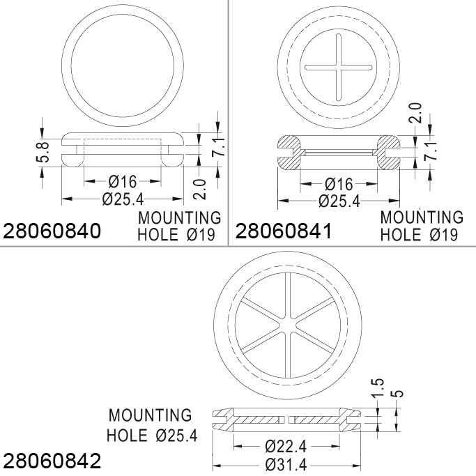 Standard grommets