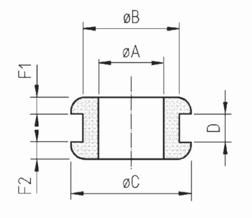 | Partnumber | Cable diameter (A) | Panel hole (B) | Panel thickness (D) | C | F1 | F2 |