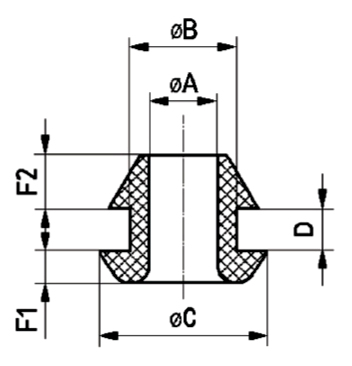 | Partnumber | Cable diameter (A) | Panel hole (B) | Panel thickness (D) | C | F1 | F2 |